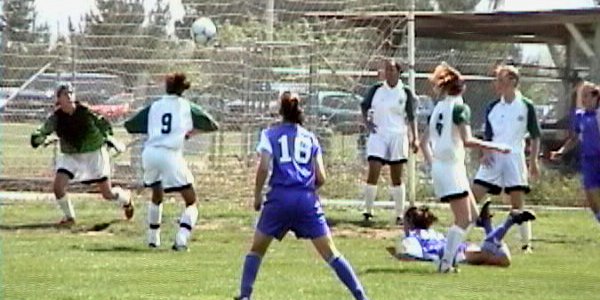 This is the first of Bunny's two goals, both served by Kira from the right side. Bunny heads this one over the outstretched hands of the Washington keeper. |
