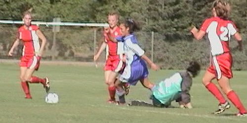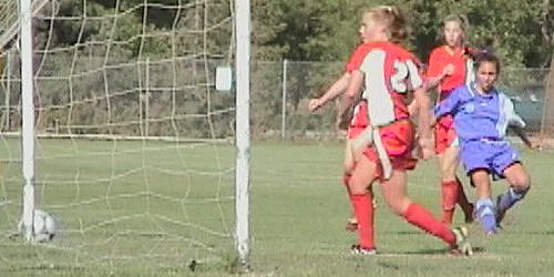 Katie gets by Oregon goalkeeper and threads her way through three defenders...