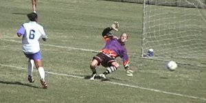 After beating the trap, Whitney sends a shot at near post... |