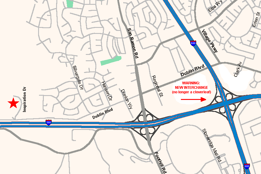 - Follow Dublin Blvd for about 1 mile, up the hill and alongside I-580