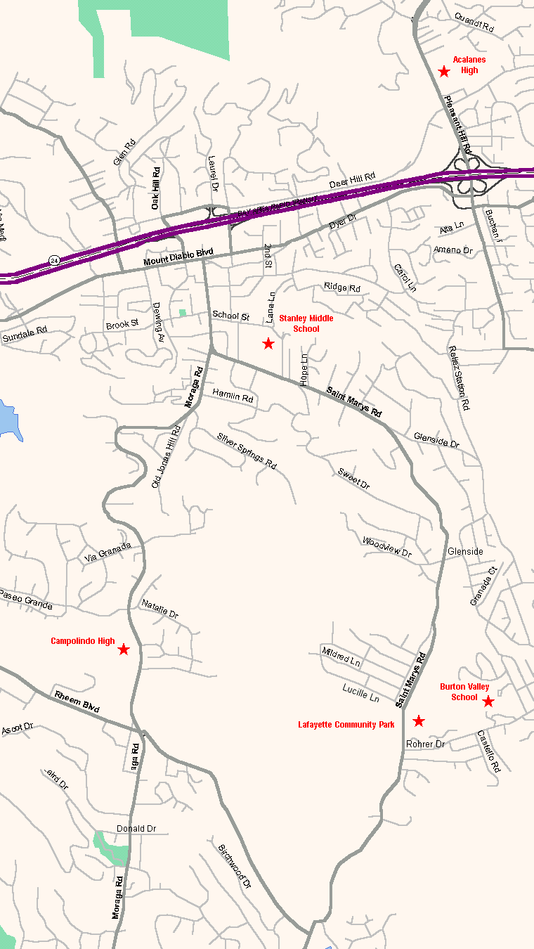 - Acalanes High School is on the right.